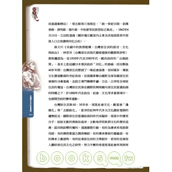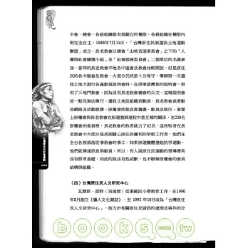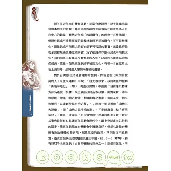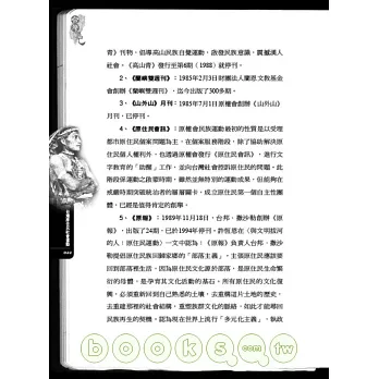 1984年成立的「台灣原住民(族)權利促進會」,係以一批原住民知識青年為中監分子,本書即以此促進會所推動的活動為主軸,看這群年輕人如何提倡「部落主義」,並跨越族群、城鄉,爭取原住民的身分地位、自我認同、國家族群與文化政策等訴求。