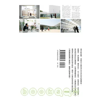 2010普立茲克建築獎頒給了日本SANAA建築事務所 的妹島和世和西澤立衛。作為日本中生代的建築師,妹島和世和西澤立衛的名字,在台灣一直較不為大眾所知,但以兩人為名聯袂主持的SANAA,近年來卻以驚人的爆發力,完成多項精彩的建案,贏得國際注目,包括金澤21世紀美術館、Dior表參道、特雷多美術館玻 more這本對談集,是西澤立衛和多位日本知名的建築家:原廣司、伊東豊雄、藤本狀介、石上純也、妹島和世、長谷川祐子,與他們所設計的建築物,在現場實際探訪,以議論的形式進行對談。透過多位建築家的相互對談,提供了珍貴的意見與尖銳的批評,可謂建築論壇中最精彩、豐富的精華典籍。