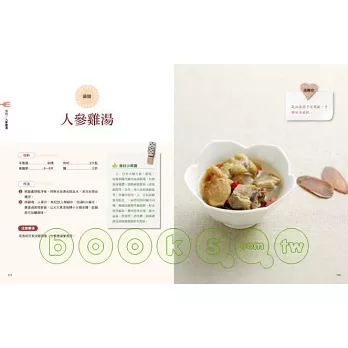 【料理】小魚乾昆布豆腐湯86 / 蒜瓣蛤蜊湯88 / 牛肉海帶湯90 / 韭菜蝦米粥92 / 黃耆雞汁粥94 / 蔥薑當歸飲96 / 人參雞湯98