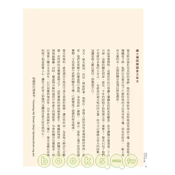 樸門是一門與自然合作的設計學,也是一種能夠創造永續且循環不息系統的設計方式。本書整理出15個師法自然的樸門設計原則,幫助人類在實際生活中,應用可再生自然資源的設計。例如「把問題看成正面資源的原則」提醒的是,當生態系某種生物數量過多,一般作法是想辦法把問題物種去除,但當懂得與大自然合作,就會發現自然界的回應是大方增加其他的物種。因此,當遇到問題時,不妨視為一道有趣的謎題,並試著與自然合作解解看吧!