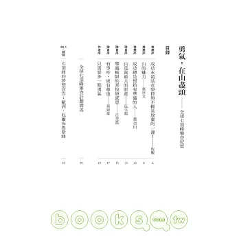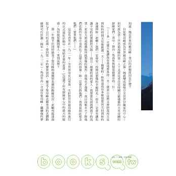 因此,本書不僅只適合給登山運動愛好者閱讀,我相信任何一個人拜讀了這本書之後,都可以從中獲取一些人生哲理與生活啟示。鄭重推薦給大家!