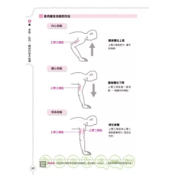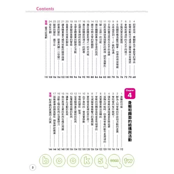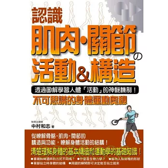 本書以簡單明瞭的文字敘述,將這些複雜的結構進行深入淺出的介紹。書中分成七個章節,依序介紹肌肉與關節的結構及活動機制,並以一個主題搭配一頁圖片的方式作介紹,閱讀起來更輕鬆,而且隨即就能明白人體的活動機制。