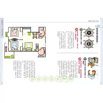 本書更以圖解方式,深入淺出帶領讀者認識風水學,教導大家如何聰明選好屋、如何避開居家的NG風水,並善用裝潢開運術及佈置方法打造好風水,為自己及家人招來好運。書中還特別加強提昇財運、戀愛運、考運的佈置法,並佐以居家風水裝修的實例,讓風水的調整方法變得一目瞭然,簡單易懂。風水不再神秘又遙不可及,而是人人可學的轉運技術。學會了基本功,就能判斷風水改運處方的學理根據,不再盲目地人云亦云,更能發揮創意,為自己住好屋、招好運。
