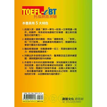 由淺入深,循著「單字→單句→段落→文章閱讀→寫作」的順序,有系統地為讀者打好基礎,建立新托福整合式寫作實力。