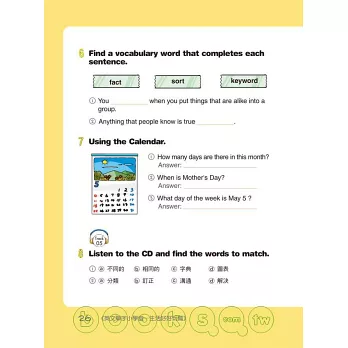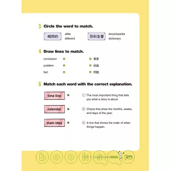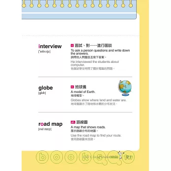 書中於每個單元的最後,介紹與各主題相關的有趣常識,如:各國的節日、名人小傳記、世界幣制、發明家傳記、青蛙的生命週期、實驗時的安全守則、數學故事、特殊的測量單位、羅馬數字等等,讓學單字不再是一成不變的背死書,在擴充生活實用單字的同時,也可一窺相關主題的全貌,更能激發讀者的求知慾與好奇心!