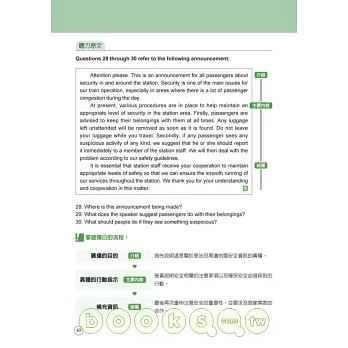 收錄美、加、英、澳四國口音,並於解答處清楚標示。提前熟悉各國腔調,正式測驗不緊張。