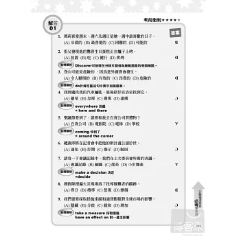 秘訣4試題解答跨頁對照編排,密集測驗增強應試實力。