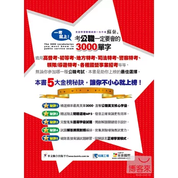秘訣1精選頻率最高英單三千,直擊公職英文核心字彙。