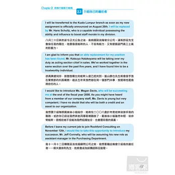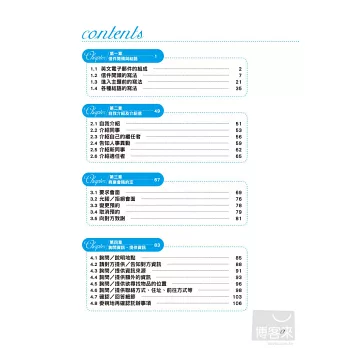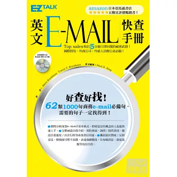 為了能讓使用者從眾多的使用例中快速找出自己需要的內容,本書已經過特別編排。能讓您以最少的時間與精力便能找出所需例句。並將類似用途及目的的例句精確分類並統整。你需要的國際商務e-mail範例句型,這本通通找得到!