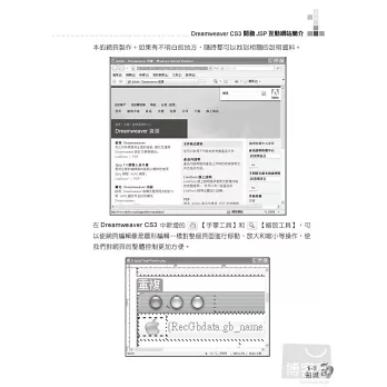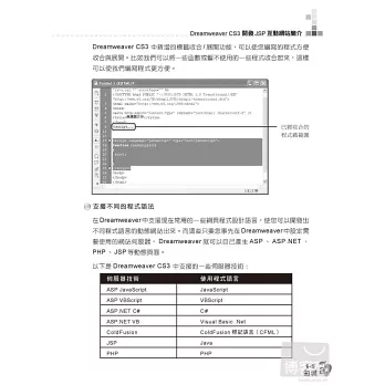 JSP是目前當紅的動態網頁製作技術,可以將其理解為是在HTML程式中再寫入Java程式混合而成的一種網頁編寫程式,其跨平台上的整合能力以及優異的執行效能又遠遠超越ASP與PHP。因此本書將結合DreamweaverCS3、JSP與MySQL這三樣利器,帶領讀者由最基本的網站架構開始,一步步熟悉JSP與資料庫網站的整合應用,最終達到輕鬆建立商業應用所需的動態網站。