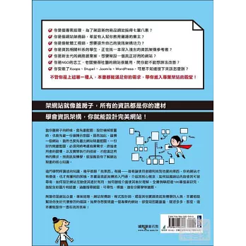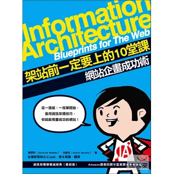 本書不是寫給完全沒有網路經驗的「傻瓜架站指南」,而是為那些用傻瓜架站軟體架好網站,然後不知道接下來該怎麼辦的人所寫的。架站應該先規畫,而這本書正是網站規畫的聖經。書中快速而清晰地教導各項資訊架構學技巧,無論你是網站企畫、專案經理、網站架構師、程式設計師,還是其他實踐資訊架構學的人員,本書都能讓你免於代價慘烈的錯誤。如果你需要規畫一個專業的網站,卻發現困難重重、疑惑多多,那麼,這本書就是你一直在找的答案!