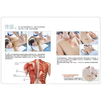 書中的每一個步驟,我們均會提供詳細,附上標籤的身體解剖圖片,讓你「看見」正在雙手下方正在按摩的肌肉以及其它的身體結構。在按摩時,就會知道要如何小心避免肌肉旁邊的骨頭,並避免傷害。並提醒一些重要的訊息,例如身體有那些部位是不可按摩的,以及秘密傳授「按摩訣竅」,提供你更多的特定按摩手法。
