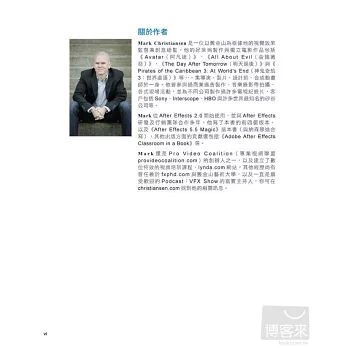 無論您正在合成單一鏡頭,或正著手製作整部影片,只要遵循專家們一再測試過的這些專業技巧,對於視覺特效與工作流程的順暢具有極大助益。本書範例藉由實際的好萊塢電影製作與各種專業工作室私房技巧,將能激發您的能力與視野,提升到更高的層次。