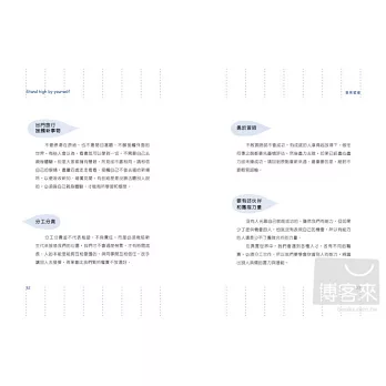 平易近人的文字風格,從日常生活各種小細節,提出20個成功圓夢法則: