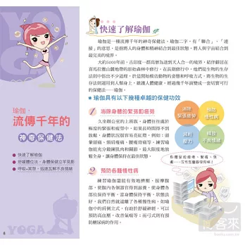 3.Q版互動式情境漫畫+精采瑜珈示範圖片:讓沒學過瑜伽的你,也能輕鬆上手!透過神奇瑜伽術,幫你打造健康、緊實完美的S曲線。
