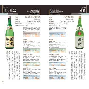 本書分為1北海道、東北,2關東、甲信越,3北陸、東海,4近畿、中國,四國、九州等5個區域。歷史悠久、堅持以資深製酒師經驗釀製方法的酒藏,目前還在日本許多地方保存著,也每年以持續令人讚賞的品質獲得飲酒人的肯定,日本酒的精緻文化更讓人在品酒之間得到共鳴,而因應時代的需求,也有許多年輕的觀點加入日本酒新時代的個性與創新,讓人享受不一樣的品嚐樂趣。