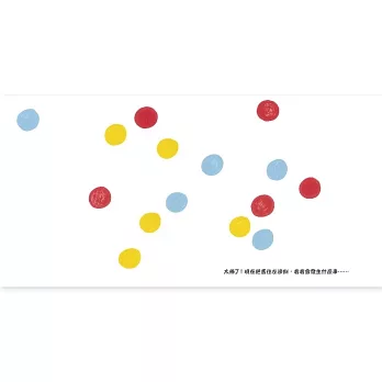 按一下會變多、擦一下會變色、搖一搖還會跑得到處都是……好有趣的一本書,顛覆了傳統童書的概念,作者採用當代全新的創作觀點,把書變成可以和孩子玩互動遊戲。