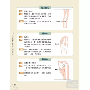 本書特別收錄30種一按就靈的特效穴,一穴配一圖,加上清楚簡要的取穴方式與按摩手法說明,讓讀者能快速按對位置,揮別疼痛。