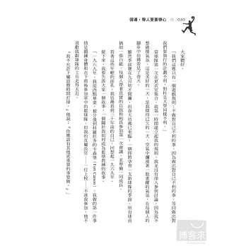 這份持續的友誼及熱情,從生活到工作中,一直帶給我深遠的影響。一路走來,從基層員工至領導者,就如同從球員到教練般,有著截然不同的心路歷程。正如書中所提到的,帶領球隊成長就如同經營企業一樣,領導者與員工都必須扮演不同的角色及責任。領導者 / 教練必須著重於提升整體的戰力,而員工 / 球員則必須著重提升自我(勤練基本動作、準投)。如果員工 / 球員無法提升自我,那領導者 / 教練就只能花時間於改變個人上,無法致力於提升整體戰力。
