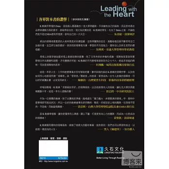 這是一本對人生、工作和經營事業非常有幫助的書。書中詳細的描述K教練的領導哲學,以及他如何用心地展現所謂「領導者」與「管理者 / 獨裁者」的差異。要想成為一位令人欽佩的領導者,可以好好細讀此書,必定受用終生。