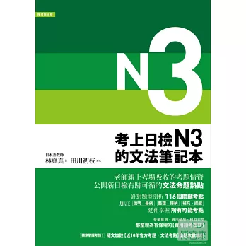 新制日檢考試已在全球展開,具10年以上教學經驗的日語老師親上考場體驗考題,並詳細比對近10年官方考古題內容,彙整新制日檢各級程度的必考文法。並加強解說接續原則、以及華語學生最容易誤判的文法陷阱,提供仍處於觀望之中、或已經準備應試的考生,一劑考前強心針!