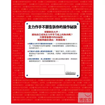 ◎揭露主力作手不願告訴你的祕訣:一次多頭就能資產翻倍的操作方法、可預測股市的神奇指標線、判讀量價和籌碼、台股8000點以上時的操作技巧……