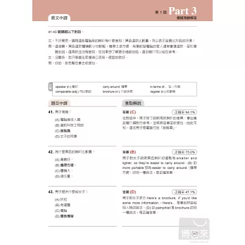 全部試題解說皆附答題「正確率」,為作者長期統計考生答對該題的比例,對於題目的難易度及易犯錯誤,考生一目了然,救弱補強。