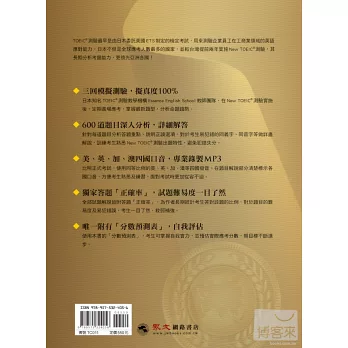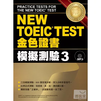 本書系除了在日本連續三年名列東大、京大生協語言考試用書的推薦首選,在台灣也是考生網友大力推薦的應考必讀書,《NEW TOEIC TEST金色證書:模擬測驗3》絕對是取得金色證書的關鍵首選!