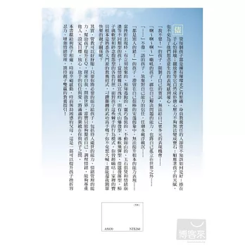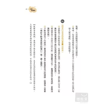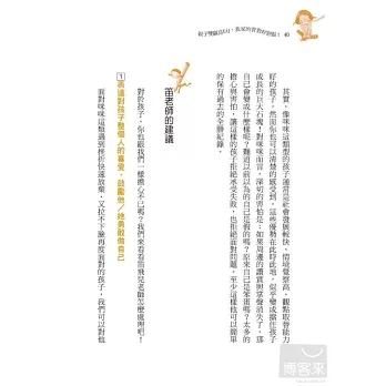當挫折出現時,有立刻放棄的、預知逃跑的、靈巧偽裝的、不動如山的、玉石俱焚和情緒崩潰等不同類型的孩子;當情緒難以宣洩時,則有火山爆發型、導航飛彈型、借題發揮型、柿子挑軟型和碎念抱怨型的各色行徑。面對孩子這些棘手的行為模式,你曾經嘀咕:家裡的寶貝根本是熟悉各大門派的教養招式,刁鑽難纏的武功高手嗎?你不免想大喊:誰能還我簡單快樂的親子關係呢?