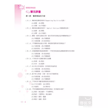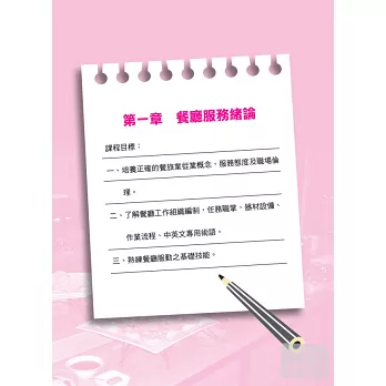一. 本書依據教育部公佈餐旅群科99課綱,「餐旅服務」課程綱要,加上作者多年教學經驗與歷年技專院校統一測驗出題之方向與內容,彙整相關資料縮寫成書。