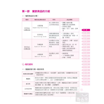 四. 本書力求排版清晰,並以表格化整理相關重點,必要輔佐圖片或繪圖,以利快速熟讀重點,有效提升考試成果,是應考餐旅群考試最佳工具書。