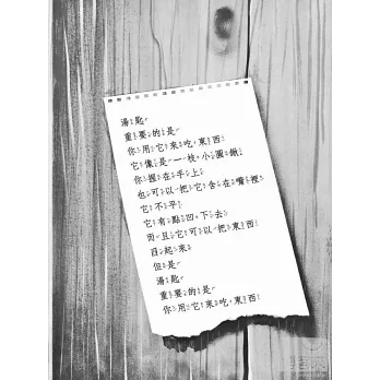玻璃杯、湯匙、鞋子、天空、雨滴、蟋蟀……,這些都是我們身邊隨處可得、可見的事物,但是你了解它們多少?它們對你有什麼意義呢?《重要書》要帶領讀者透過想像、觀察和描述,重新尋找事物的定義,重要的是發現這些事物的本質,和它們存在的意義。你可以將本書視為一本「開啟兒童創意思考」的圖書,但我們會更希望這本書,是您和孩子一起觀察、發現這世界的遊戲書。因為這本書就像是楊茂秀老師說的:「它是一種玩具,在玩耍它的過程,就是在播種思維的種子。」