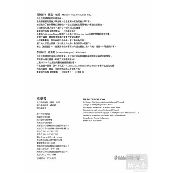 ★本書是美國兒童文學先驅──瑪格麗特.懷茲.布朗的經典作品,以雋永的散文詩,配合簡潔的插畫風格,帶你重新認識你已經知道的事物。