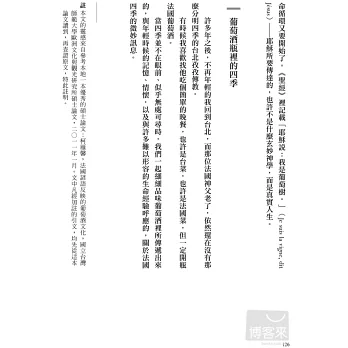 多年來,作者總是透過流暢且意味深遠的文字,從文化、風土及人文角度闡述西方葡萄酒的知識,舉杯品酩間自有人生哲理存乎其中。