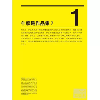 讀者在閱讀本文吸收作者完整知識的灌輸之外,還可以在隨處穿插的訪談摘錄裡,聆聽不同專業人士的各種說詞和看法;對每個章節的主旨意涵,可以有縱向的深入認知,更有橫向的豐富闡釋體會。而且,除了知識觀念的灌輸和實務規則的陳述之外,作者其實也花了許多心思在作品集的製作技術和表現創意的介紹。雖然重點還是這些技術和創意背後的知識觀念,每個章節配置相關作品集類型的插圖表現和簡要說明,可以讓讀者透過這些具體圖例,檢視不同專業的設計人,如何在不同的表現形式下呈現作品集的普遍意涵,並滿足不同設計類型的作品集製作考量與技術需求。