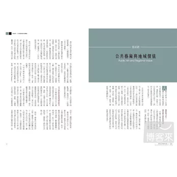 公共藝術是城市文化價值的重要組成部分,東京都內處處充滿了以公共藝術提升都市價值的成功案例。從城市公共藝術發展史上最重要的一顆明星:立川市開始,作者從藝術家的角度,帶領我們走訪大東京最重要、精彩而發人深省的公共藝術重鎮,重新認識藝術在生活中的可能性。