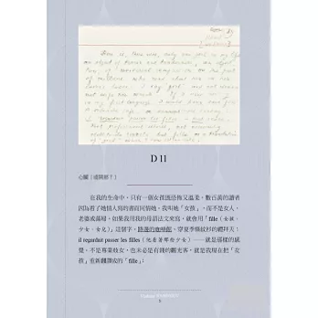 「在我的生命中,只有一個女孩既恐怖又溫柔;數百萬的讀者因為看了她情人寫的書而同情她。我叫她「女孩」,而不是女人、老婆或蕩婦──如果用我的母語法文來寫,就是「fille」這個字:女孩,女兒,少女。」