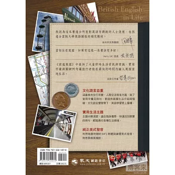 語言學習最不容易掌握的就是文化認知 (cultural literacy),在語言教室中可以提升學習者的語言能力,但不容易培養文化能力 (cultural competence)。這兩項涉及溝通及表達意見的能力,建立在對文化習俗的理解,只有在使用該語言的國家融入社會,才有機會學習到什麼場合該說什麼話、該怎麼說。《前進英國》這本書內容豐富,針對每一主題,提供實用的字彙、情境英語關鍵句及旅居英國生活相關重要資訊。閱讀本書能讓英語學習者學到正確實用的英語,更難得的是,讀者可快速掌握對英國文化習俗的認知,並增進各種情境所需要的英語表達能力。