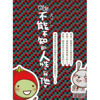 在生活中,你會認識不同個性的人、你會遇到各式各樣的心機:用眼淚博取同情、雞婆、愛碎碎唸、沒有主見、反應遲鈍、見不得別人好、愛說大話……一樣米養百樣人,一種生活有萬般無奈,生活苦悶,人生充滿了不確定,唯有知己知彼,才能明哲保身,而凡事幽默以對,才是亂世的王道。