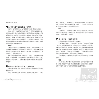 坊間有教大家如何運用問句來銷售的書少之又少,本書有系統地整理出問句七大技巧,三大公式,並分別舉例說明,你可以直接套用你所銷售的產品,無論電話行銷,邀約客戶,企畫提案,締結成交等一切適用。