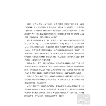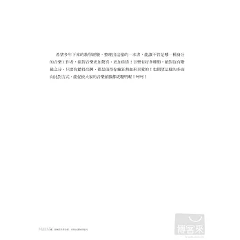 這是一本超越你想像的書,爵士鋼琴家凱雅以多年浸淫在各類音樂中的實戰經驗,加上長期從事音樂推廣教育與音樂教師研習的細膩觀察,甚至是親子音樂互動的獨家心得,都將在這本書中分享給大家!
