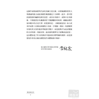 ★詳盡敘述《風格的要素》形成的歷史與版本演進,讓喜愛《風格的要素》的讀者進一步了解此書背後的有趣故事
