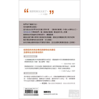 ★無論何種領域的創作者,都可透過書中史傳克與懷特踏實的成長教育與簡約的生活型態,體會二位作者對寫作、對理想、對人生的堅持,以及作品風格如何反映作者精神,進而豐富內在涵養