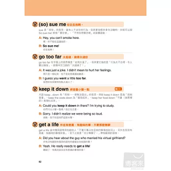 依照各種情感表達分類,用最貼近美國生活的方式,學習課本學不到的道地美語。以下摘錄精采內容: