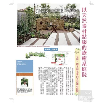 本書中登載了許多自然庭院的實例,提供不同的主題和點子,幫助您實現您心中的夢想。好了,您想不想也來品味一下自然庭院的妙趣呢?