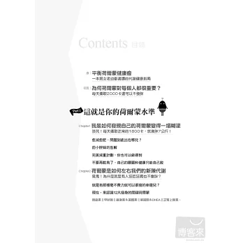 ◎7個「你知道嗎」,告訴你值得深思的驚人數據與觀念;28個「荷爾蒙回家功課」,讓你更了解你的荷爾蒙。