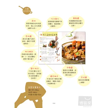 ◎飯、麵、粥與湯煲;主菜、小菜、滷味和鍋物;餅、堡、三明治及捲捲,還有零食、冰品和甜點……各種菜式一次全學到!