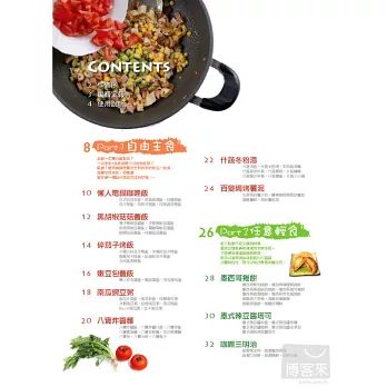 ◎4大單元,開章明義羅列蘭姆任性美食撇步,好菜美味吃、隨意變,當然也要健康做!