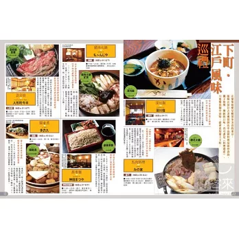 另外特別企劃嘗遍下町的江戶美味單元、450日圓的懷舊澡堂泡湯單元,以及最夯的東京天空樹特集,都是一併將相關資訊做完整的整理,方便你享受地方美食、也能採購最道地的伴手禮!