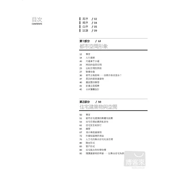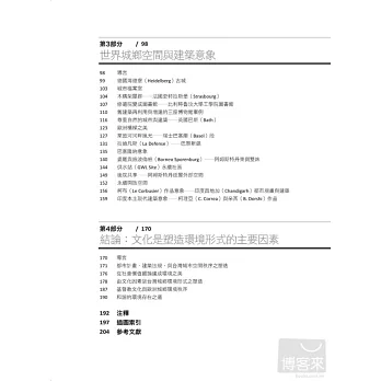 如上所述,本書將由文化環境與跨文化比較探討台灣地區的實質環境形塑與居民集體的空間價值觀,並以都市地區居民日常生活所及與所需的空間為主要研究對象,內容分為四個部分與子題:(一)都市空間形象(二)住宅建築物與空間,這兩部分主要以跨文化比較台灣地區與歐美地區都市空間形象及住宅建築物與空間之差異,進而探討其背後所反映的社會環境與居民價值觀;(三)世界城鄉空間與建築案例:此部分係就筆者海外行腳所及,其中頗具創意與值得台灣未來實質環境形塑引為參考與學習之案例,它們多數分佈在歐洲地區以及少數在印度,扼要敘述它們的計畫內容與評論其成果,也是另一種跨文化研究;(四)結論:文化是塑造環境形式的主要因素,社會則是次要因素,本部分將深入探討台灣城市環境形塑所依據之社會規範--都市計畫與建築法規,以及文化因素--儒家與道教兩大思想影響下所產生的實質環境形象與秩序。此外,也若干探討基督教文化對於歐洲實質環境形式之影響。 由於「空間」類別繁多,可探討的議題也多,因而在內容寫作與編輯上,以近乎散文形式,而非章節層次分明的嚴謹格式,如此也便於讀者諸君以較為自由的方式閱讀本書各部分子題論述;還要一提的是,本書主題涉獵知識範圍廣泛,筆者限於才學,所作的研究與論述仍然不夠嚴謹與完整,疏漏之處殷盼讀者先進指正!